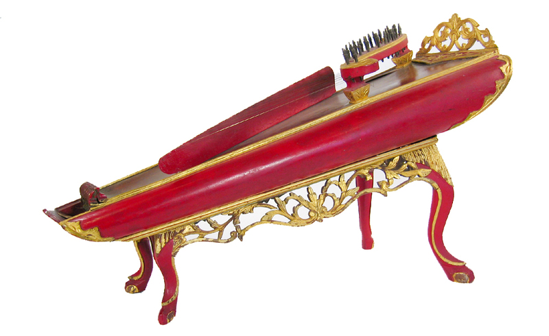 The celempung is a type of plucked-zither that is set on four legs with the front legs higher than the two rear legs; hence, the instrument slopes downward toward the player. The celempung has thirteen pairs of strings, which are stretched between the tuning pins at the higher and lower ends of the instrument. The strings rest on the bridge that is placed across the sound board (body of the instrument). The celempung is played with thumbnails, while the fingers damp the sound of the strings.